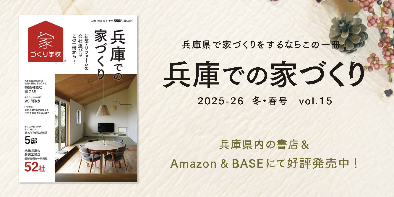 こにちは!大阪・北摂エリア・豊中市で、高気密・高断熱の健康住宅を手がける工務店、モリジュウです。 この度、家づくり学校さま発行の雑誌『兵庫での家づくり vol.15(2025-26冬・春号)』 に、モリジュウが掲載されま […]…