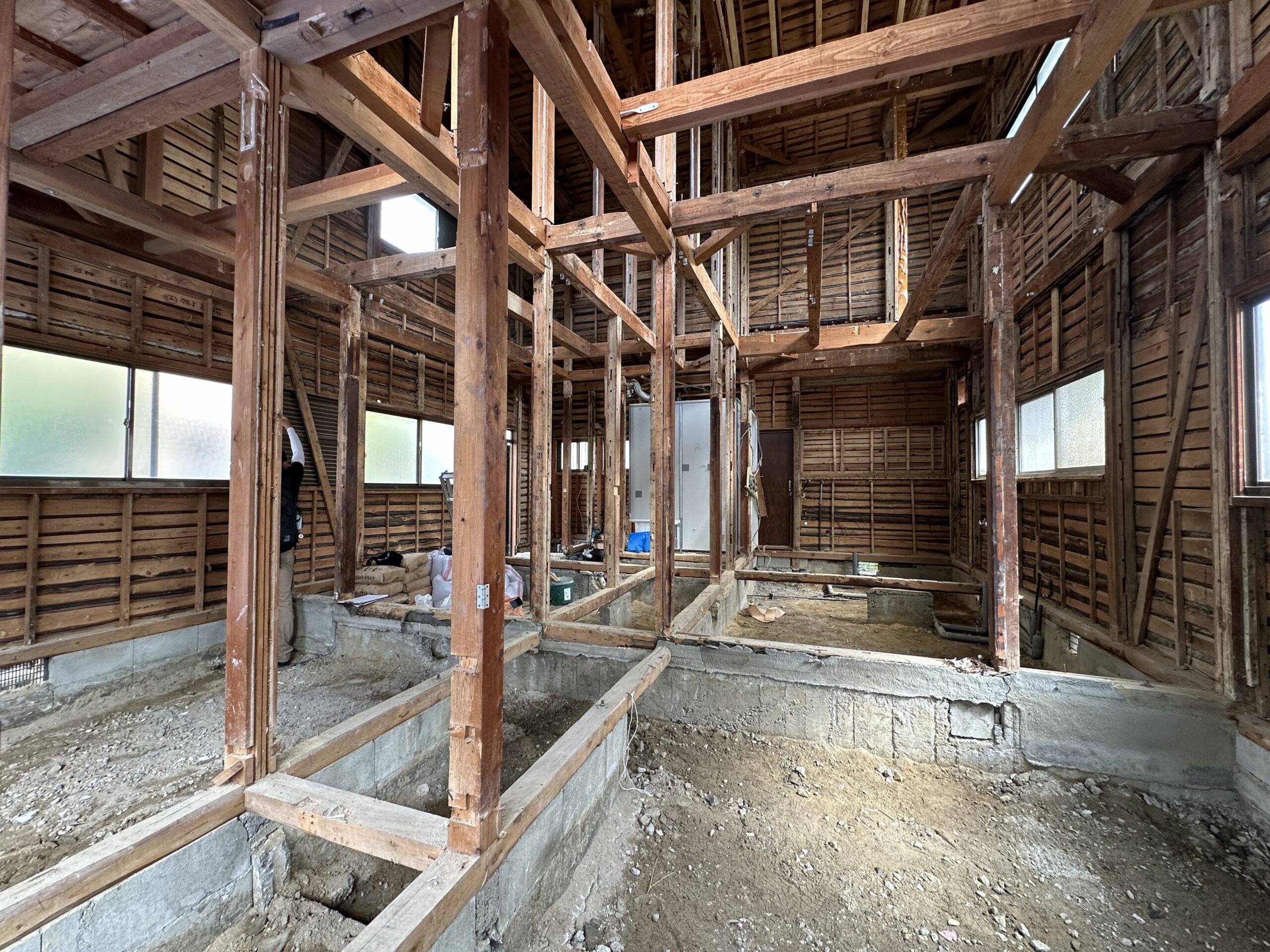 骨組みまでむき出しにして、基礎を補強する工事もできます。