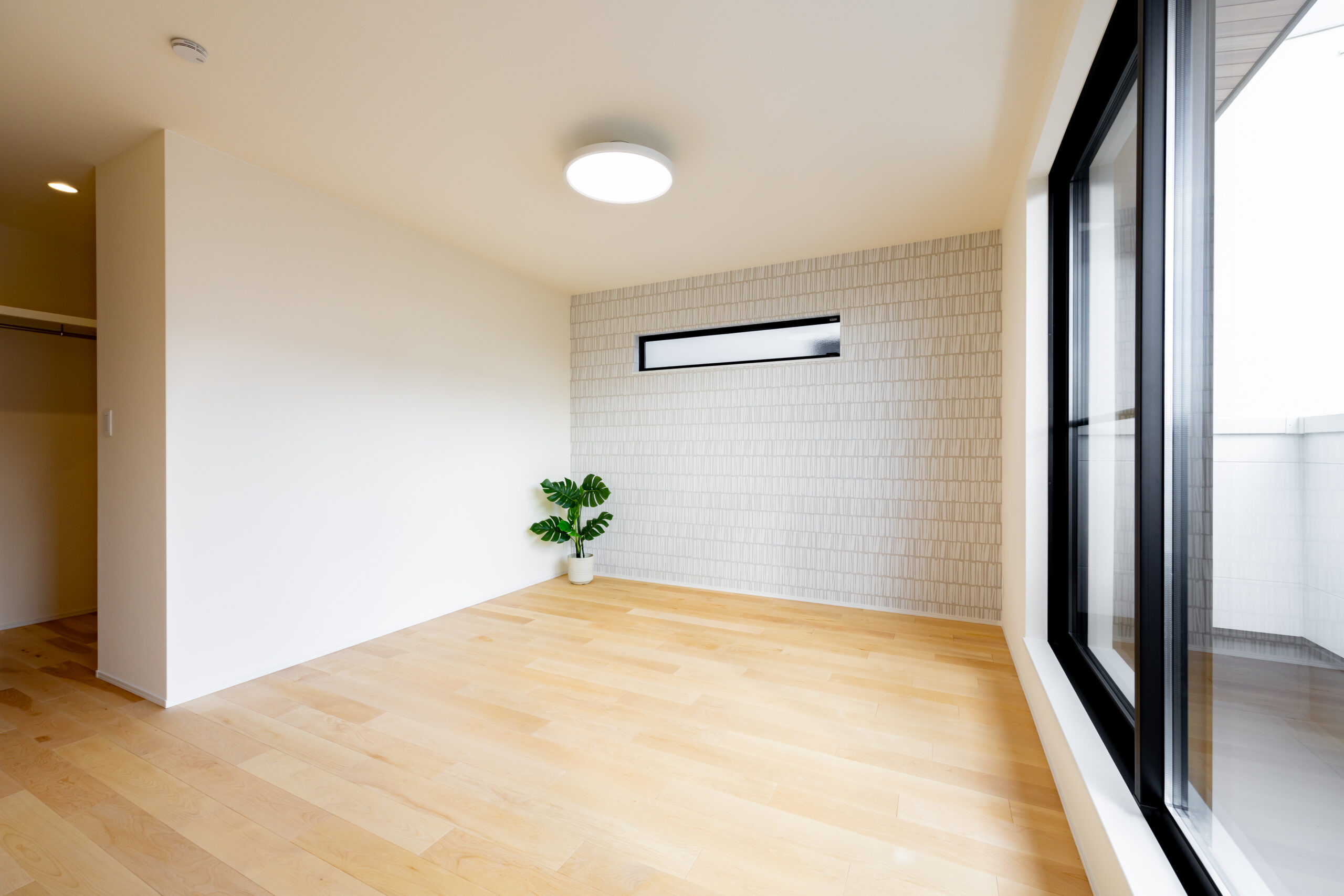 床材には「無垢フローリング」を採用しており、素足で歩いても心地よく感じられます。