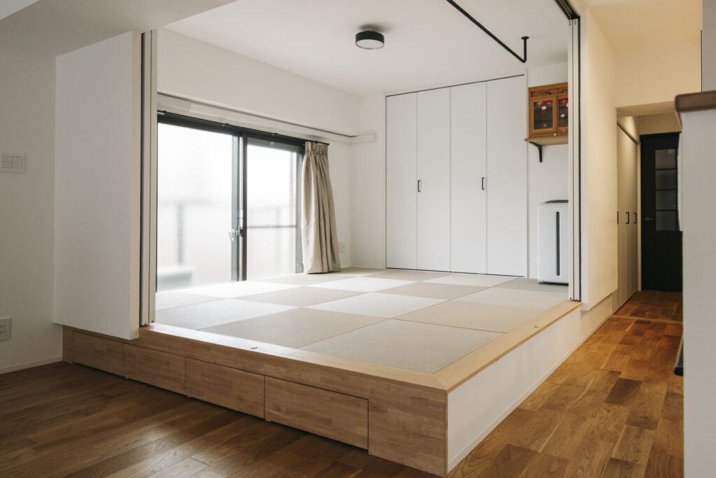 リビング横の小上がり和室に室内干し