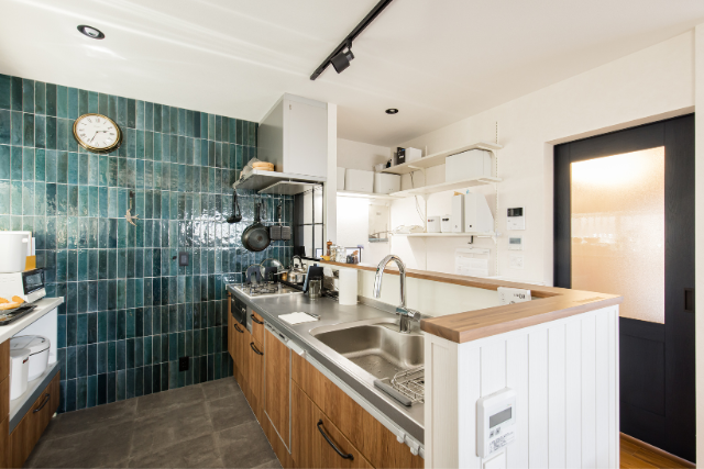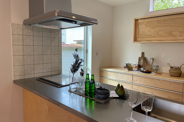 光が当たると表情が変わり、キッチンをぐっと印象的にしてくれます。