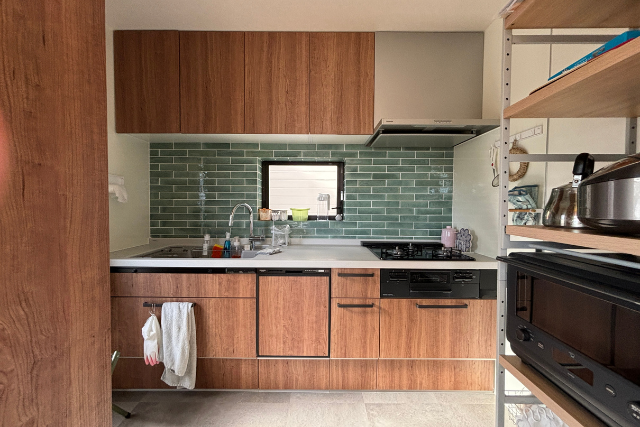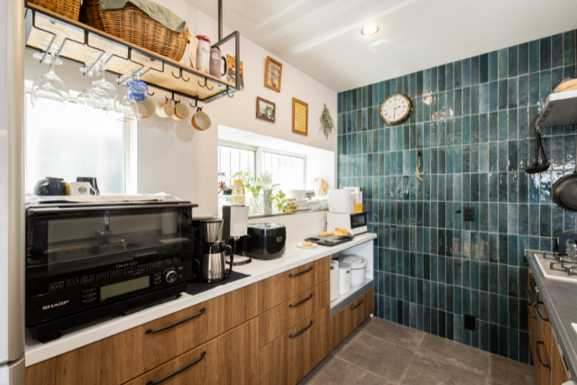 コンロ横のアクセントとして使うことで、キッチン全体を整えてくれます。